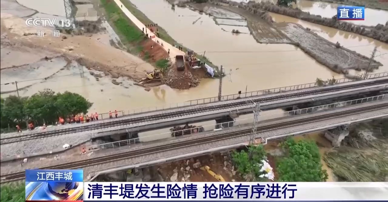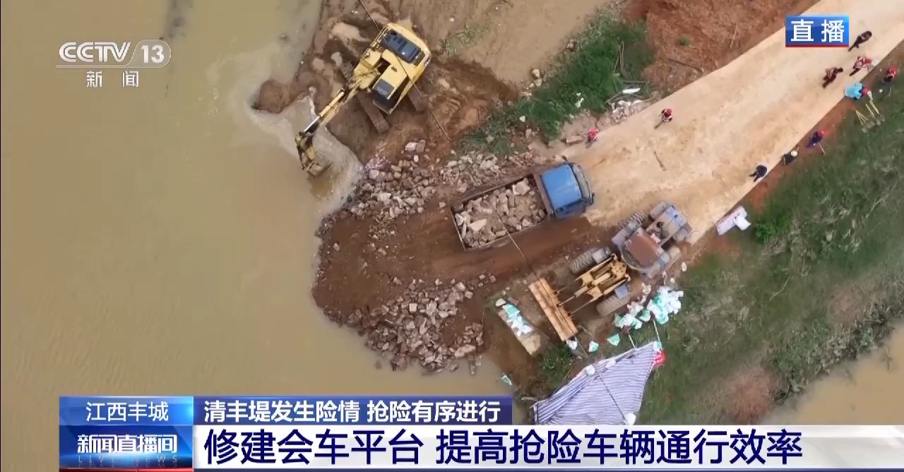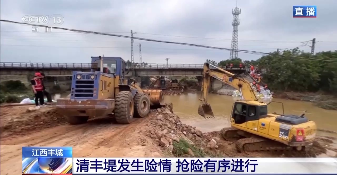 总台记者刘昀彤:昨天,江西丰城丽村镇的清丰堤发生了决口险情,决口宽度一度达到30米左右。