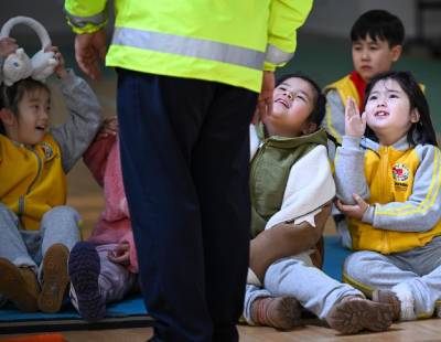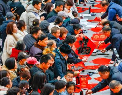 1月1日晚,成都金融城双子塔上演灯光秀,欢庆2024年的到来。中新社记者 张浪 摄