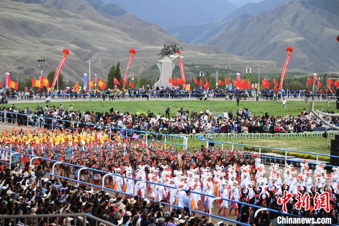 2024年8月13日,甘肃省张掖市肃南裕固族自治县70周年县庆庆祝大会活动在该县索朗格国际赛马场举行。杨艳敏 摄