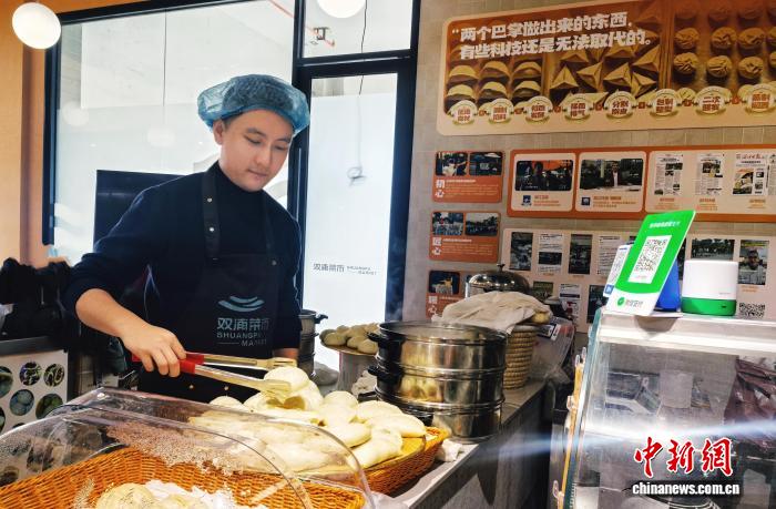 中新网杭州12月24日电(曹丹)工作日下午三点,浙江杭州双浦菜市内,“山东大蒸包”摊位前热气腾腾。年轻摊主赵唯宏正忙着分装包子,身后的父母与表姨分工协作,揉面、蒸包,忙碌而有序。摊位前的包装袋上贴着取件码,全是手机预订的订单。