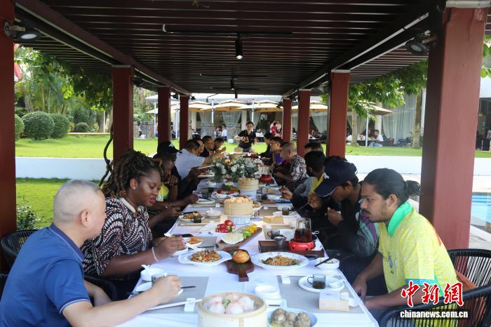 图为老外也来寻味“老爸茶”。 海南君华海逸酒店 供图