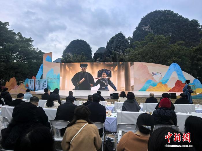 中新网桂林1月5日电 (邓竣缤)1月5日,时值中国明代地理学家、旅行家徐霞客诞辰439周年,“跟着徐霞客游广西”主题活动在广西桂林市阳朔县大榕树景区正式启动。