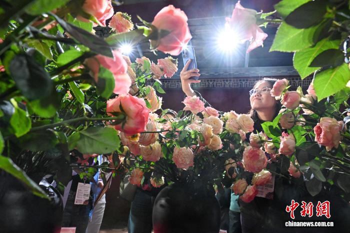 2025年9月19日,第二十三届中国昆明国际花卉展在云南省昆明市开幕,多种月季鲜切花吸引观众拍照。李嘉娴 摄
