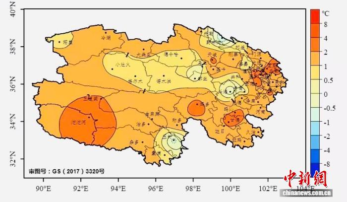 图为2025年12月1日—2026年1月15日青海省平均气温距平分布。 青海省气象局 供图