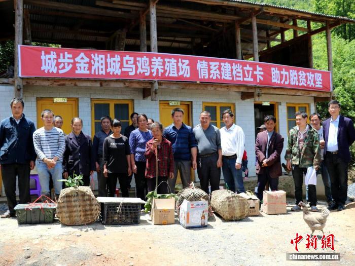 2017年,王晋龙成功脱贫,成为城步县脱贫示范户。脱贫后,他想着“日子好了不能忘乡亲”,免费为部分村发放鸡苗2万多只,还手把手教选种、喂养、防疫、销售,牵头成立金湘城乌鸡养殖专业合作社。在他带动下,土鸡养殖成了金水村的主要产业,“苗乡战斗鸡”品牌越叫越响。