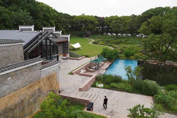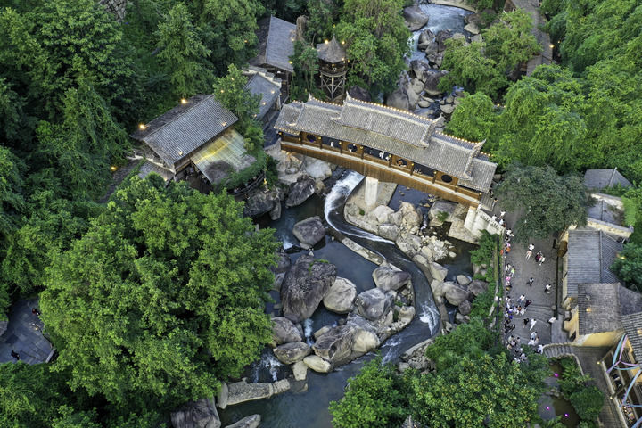 这是2025年7月11日在江西省上饶市广信区望仙乡拍摄的望仙谷景区。望仙谷景区过去曾是花岗岩板材生产基地,长期无序开采导致植被破坏。之后当地政府一次性关闭所有石材加工厂,通过生态修复,将这里打造成一个集山水人文景观、民俗体验、活动演艺于一体的度假旅游区。新华社记者刘金海 摄