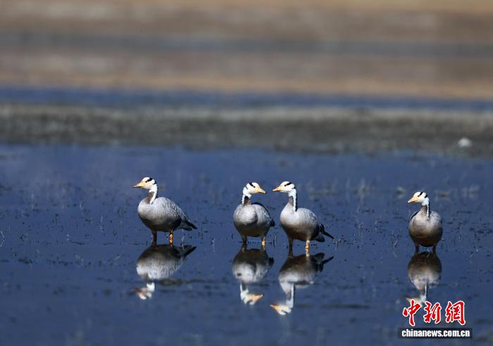 1月23日,4只斑头雁在纳帕海休憩。 黄兴鸿 摄