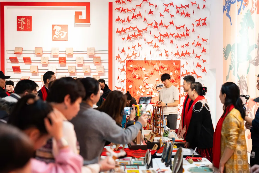 新疆美术馆里,“飒沓流星春风得意——第十三届天山南北贺新春非物质文化遗产年俗展”人气火爆,剪纸、泥塑、版画等非遗项目吸引众多市民游客驻足体验。