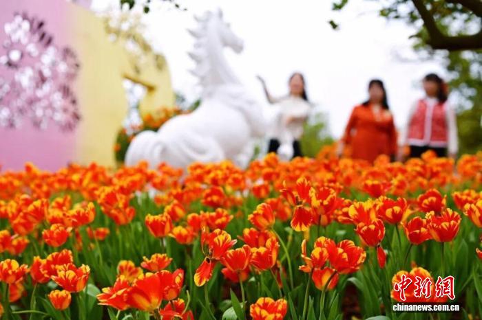 南宁青秀山春日花海盛放 逾12万盆郁金香迎客来