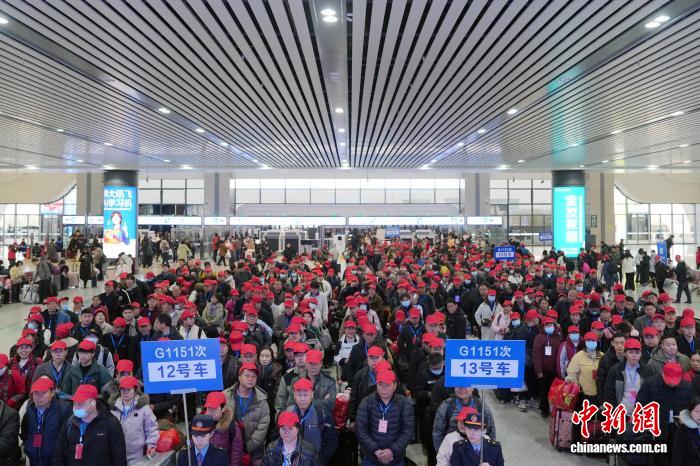 中新网南阳2月25日电 (刘鹏王甜)25日,农历正月初九。年味儿还未散尽,在中国铁路郑州局集团有限公司南阳车务段南阳东站的站前广场上,已是人潮如织。扛着编织袋、拉着行李箱、拎着家乡特产的600名南阳籍务工人员天刚亮就陆续赴此集合,准备一起乘坐开往深圳北方向的G1151次务工专列奔赴岗位。
