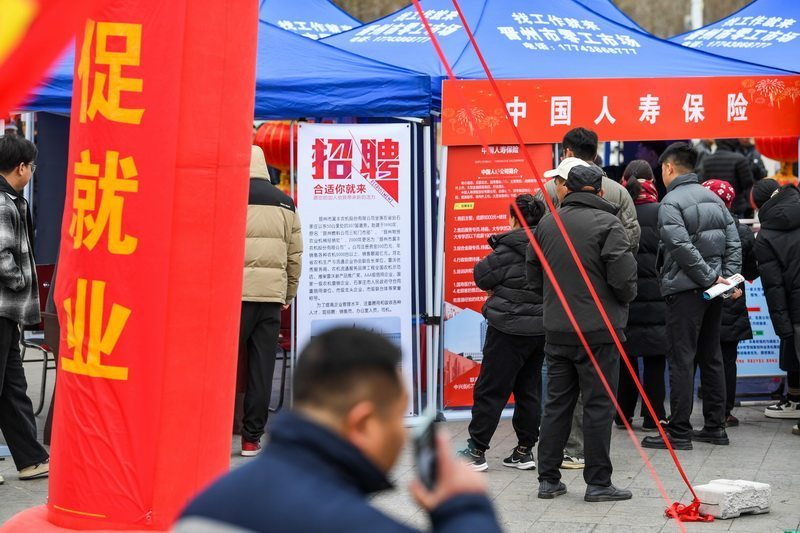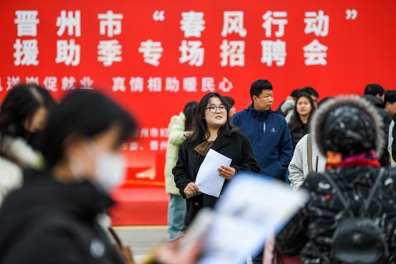 2月27日,在2026年晋州市“春风行动”暨就业援助季专场招聘会现场,求职者寻找就业岗位。