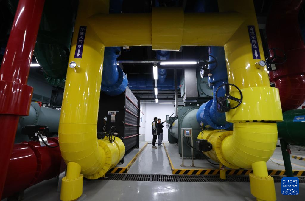 2月26日,在位于京津产业新城高村数智创新园的中国电信京津冀智能算力中心,运维工程师对冷冻站进行人工巡检。