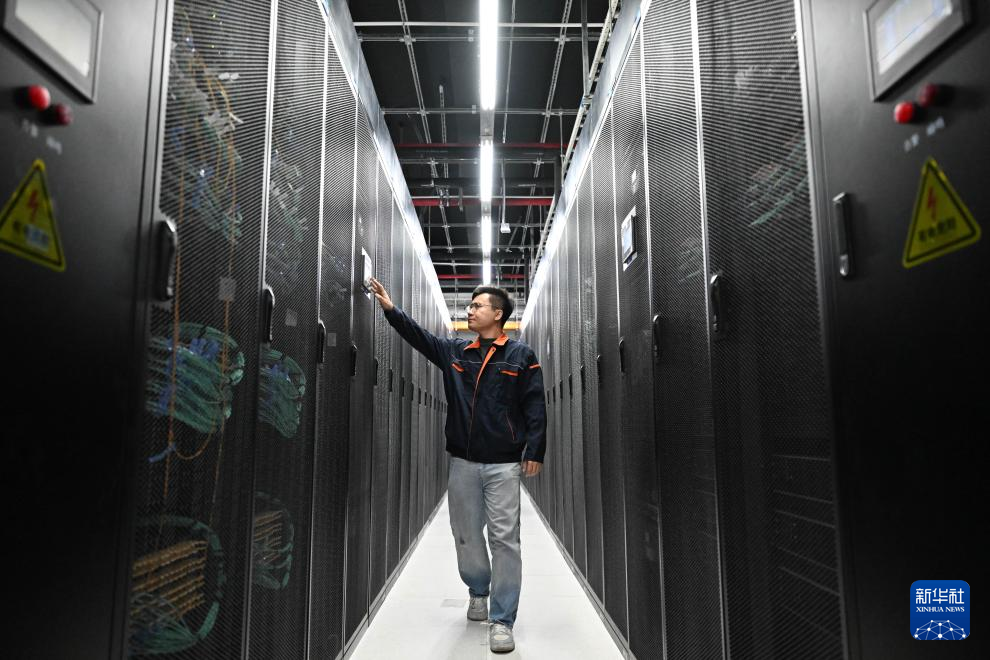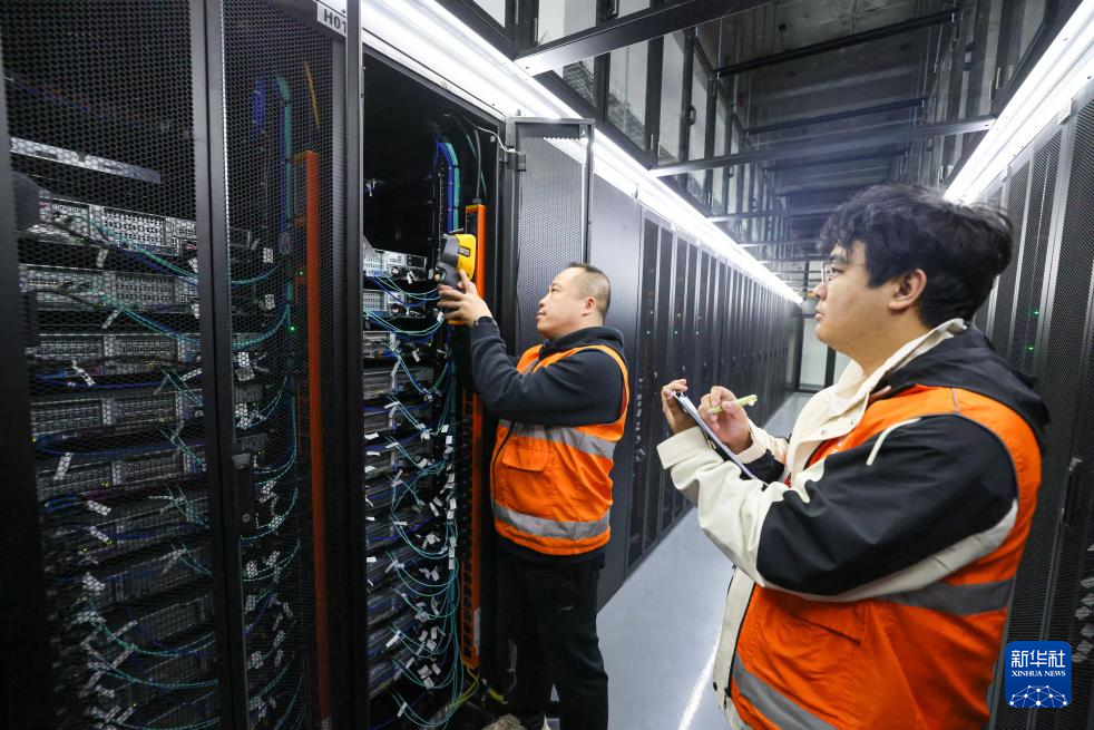 2月26日,在位于京津产业新城高村数智创新园的中国电信京津冀智能算力中心,运维工程师巡检智算服务器。
