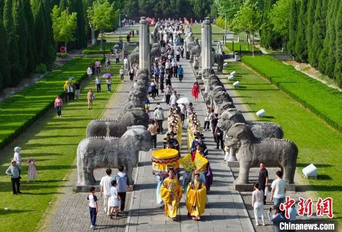 江苏盱眙:明祖陵上演实景表演再现600多年前盛况盱眙县黄梅剧团的演员在明祖陵景区为游客表演。许昌银 摄