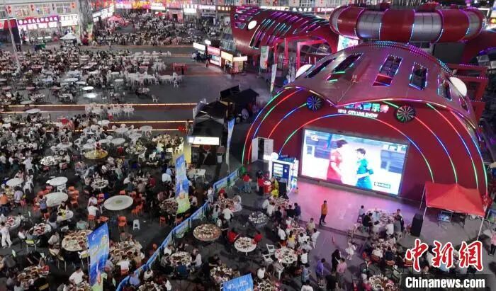 食客在“尅街”品龙虾、看“苏超”。盱眙县委宣传部供图