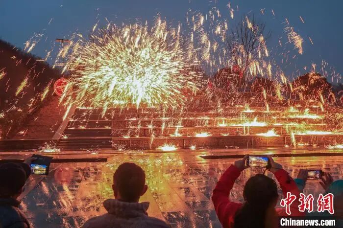 非遗“打铁花”在盱眙绚丽绽放。中新社记者 泱波 摄
