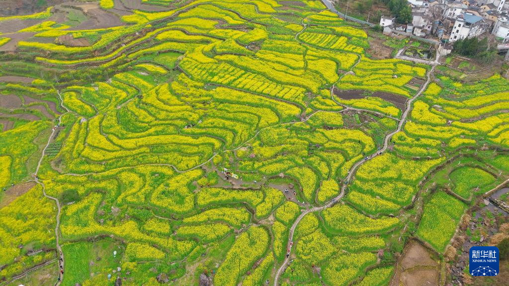 眼下,安徽省宣城市绩溪县家朋乡幸福村的油菜花田进入盛花期,大批游客来此踏青赏花。