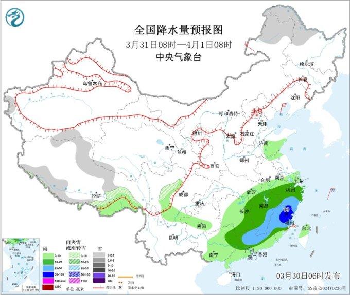 30-31日,江南、华南等地雨势不减,湖南、江西、广西、广东、福建等地部分地区有大雨或暴雨、局地大暴雨;上述地区并伴有短时强降水,部分地区最大小时雨量超过50毫米、局地80毫米以上。