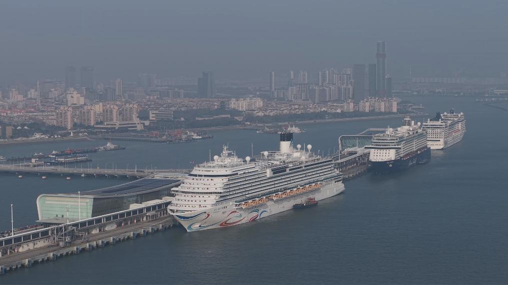 3月29日,“地中海华丽号”与“爱达·魔都号”邮轮先后靠泊,与28日先期抵达的“迈希夫6”实现同港集聚,完成了2026年上海邮轮口岸首次“三船同靠”。