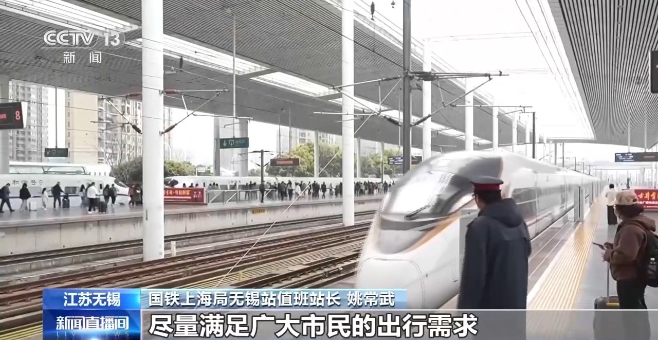 国铁上海局无锡站值班站长 姚常武:普速列车我们加挂列车,动车组重联列车,尽量满足广大市民的出行需求。