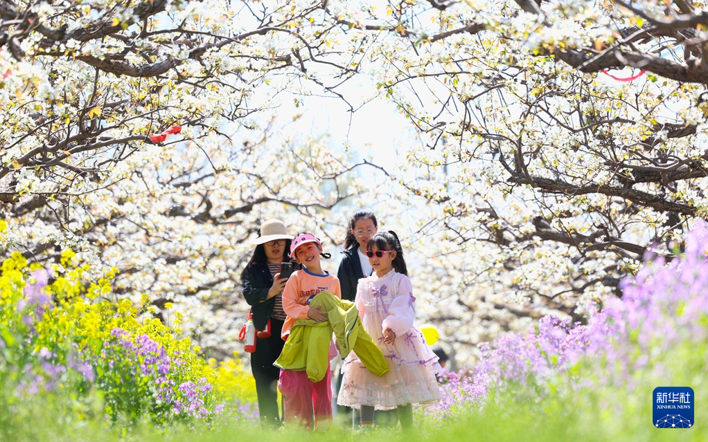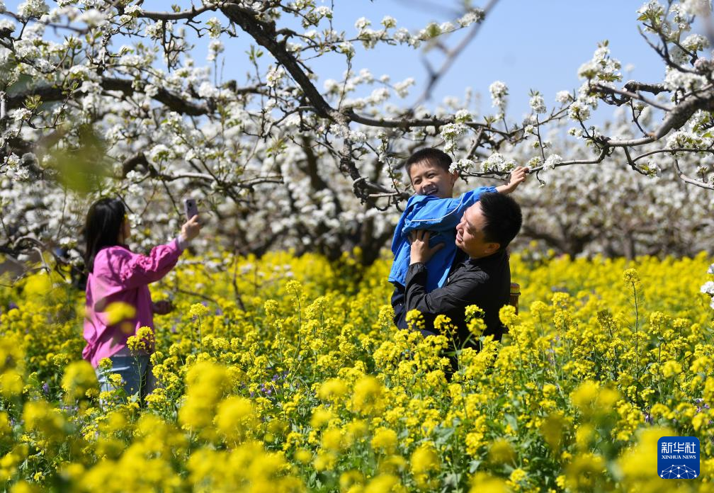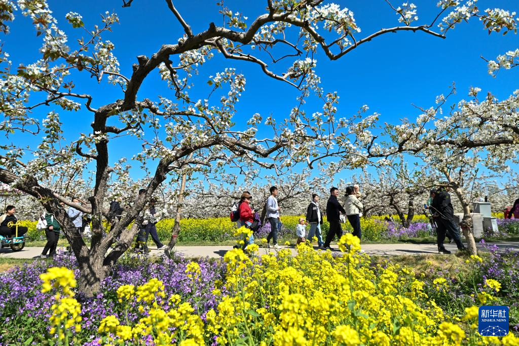 近日,河北省晋州市17万亩梨树迎来盛花期,梨花与田间连片盛开的油菜花相映生辉,吸引大量游客前来赏花踏青,休闲度假。