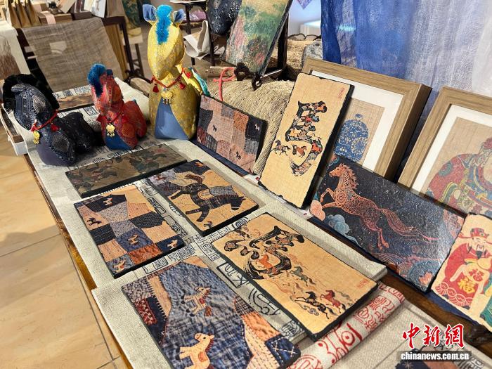 2月5日,位于重庆的“壹秋堂”非遗工坊内,融合夏布与古砖拓印技艺的文创产品“夏布古砖瓦画”呈现马元素。中新社记者 钟旖摄