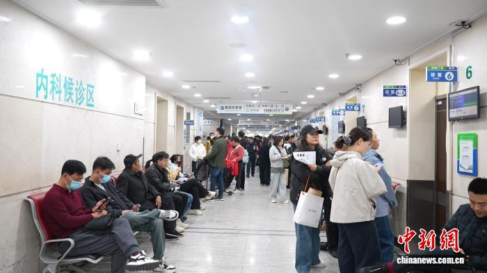4月7日,中国医科大学附属盛京医院内科候诊区就诊情况。李雪飞摄