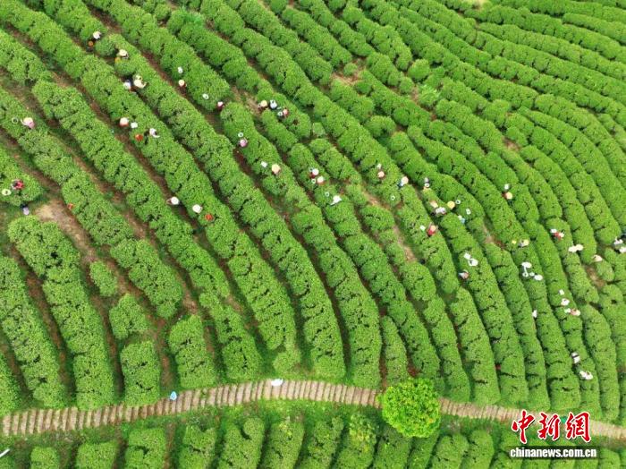 中新网河源4月7日电 (张璐甘建楼)近日,广东省河源市紫金县连绵起伏的茶山上,茶树陆续吐露鲜嫩新芽,空气中弥漫着淡淡的茶香。