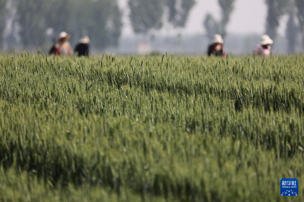 4月25日,河南省焦作市温县祥云镇古贤村农民在麦田里除杂。