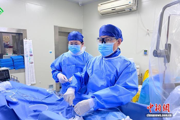 山东大学齐鲁第二医院心血管内科肺血管与右心疾病亚专科主任王青海(右一)在手术室内开展手术。受访者供图