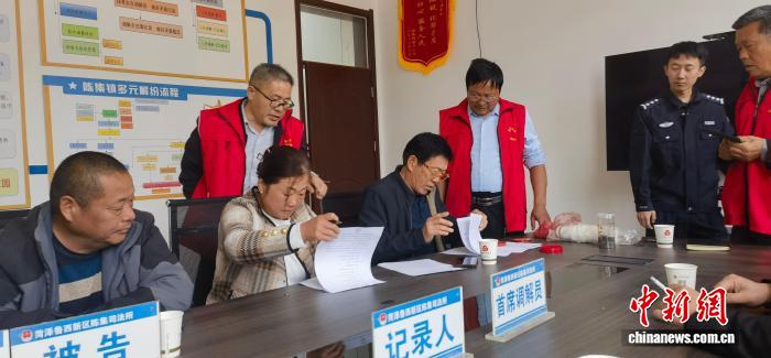 菏泽鲁西新区陈集司法所工作人员在调解村民矛盾。菏泽鲁西新区办公室供图
