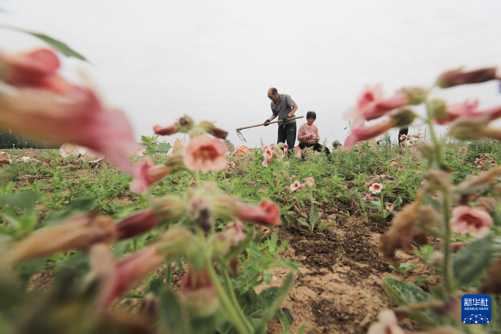 4月28日,河南省焦作市温县番田镇后北马村农民在采收怀地黄种子。