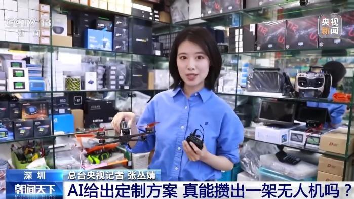 总台央视记者张丛婧:这就是我们刚刚组装出的一架无人机,所有配件都是在这个楼里买到的,从一堆零散配件到这样的整机,只用了不到两个小时的时间。现在我们就来试一下它的功能到底如何,看它能不能飞起来。