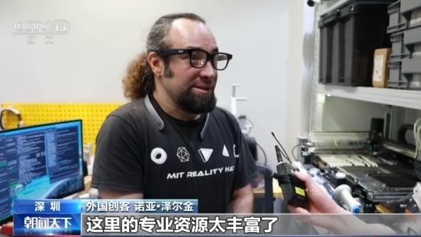 外国创客诺亚·泽尔金:这里的专业资源太丰富了。不光是供应链比世界上任何地方都发达,因为东西都是在这儿造的,还有人的专业度。前几天我出去买东西,随便跟一个人聊起来,结果发现他开了一家印制电路板工厂。你在这儿随便走走,就能碰到开电路板工厂的人。如果你想做东西,你就得来深圳。