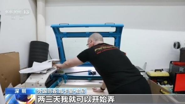 外国创客扎卡里·哈尼:如果有新想法要开发,感觉在中国特别方便。去华强北逛一下,各种各样的东西都能买到,两三天我就可以开始弄。