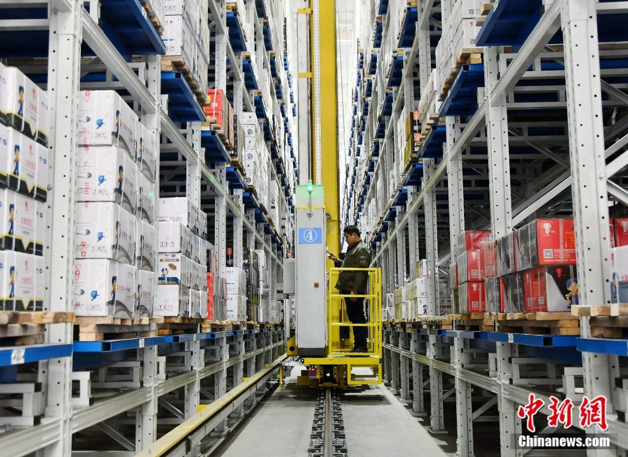 2024年3月12日,在河北永年工业园区的河北喜力德五金制造有限公司,工人正在智能仓储车间装卸货物。胡高雷 摄