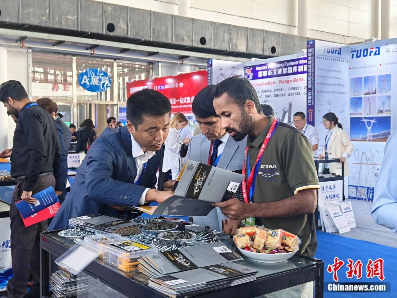 2024年10月10日,在2024年中国·永年紧固件基地国际采购大会上,外国客商正在选购紧固件产品。胡高雷 摄