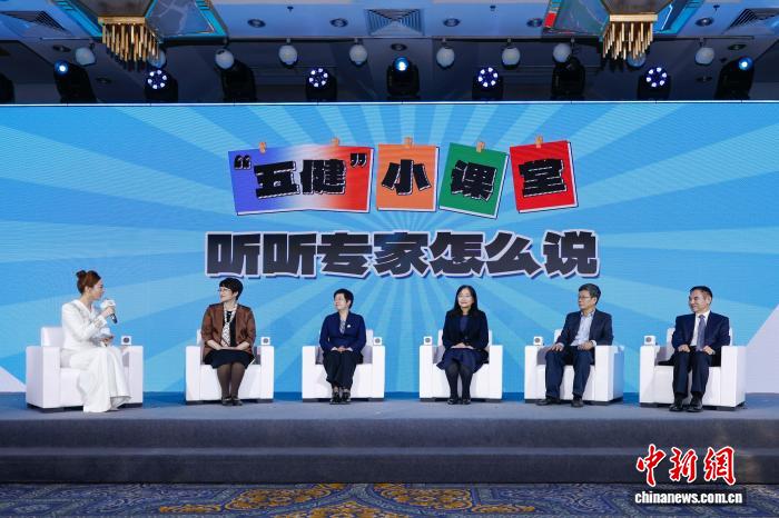 活动中,国家卫生健康委及相关部委代表参加了儿童青少年“五健”促进行动启动仪式,点亮了代表体重健康、视力健康、心理健康、骨骼健康、口腔健康的五色花朵,寓意多方发力、共同守护儿童青少年健康。