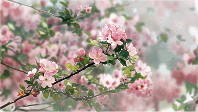 淡雅的海棠花飘卷如云