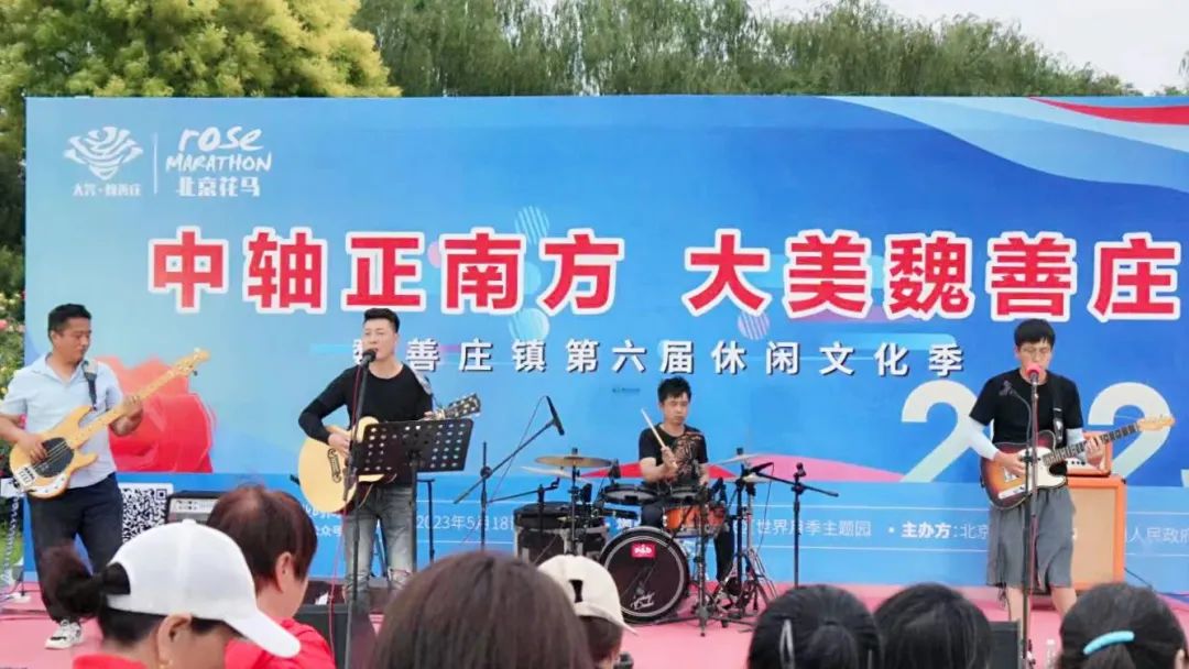 活动现场以月季花为媒,职工群众遛娃嬉戏,感受花漾时光,驻足品尝丰富的美食和特色农产品,整个园区都笼罩着浓浓的“烟火气”。魏善庄镇本土乐队还现场演奏动感音乐,同广大职工群众共享美好时光。