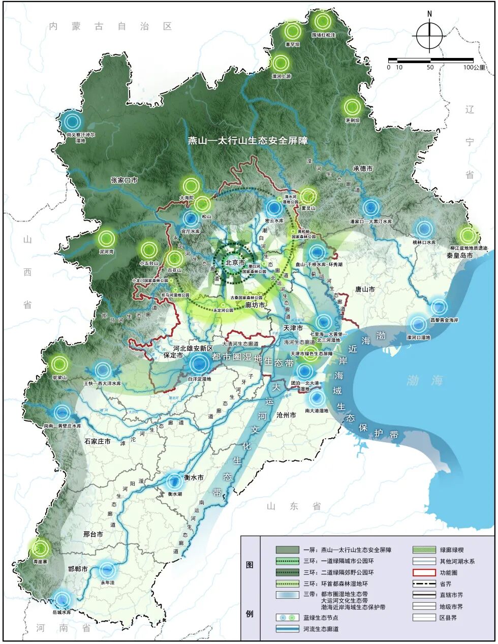 首都都市圈生态空间格局规划示意图