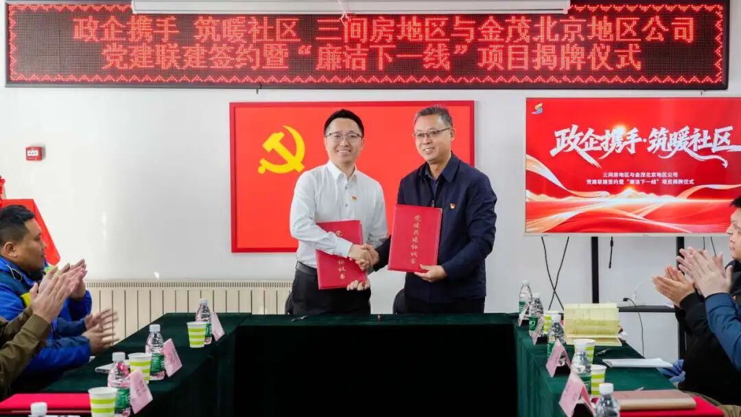 此次政企共建,是三间房地区探索基层治理新模式、汇聚发展新合力的重要实践,也是金茂北京地区公司践行社会责任、深耕地方发展的具体体现。未来,双方将以此次签约为起点,以廉洁建设为纽带,以社区需求为导向,秉持优势互补、资源共享、互利共赢、服务民生的原则,推动“廉洁下一线”项目走深走实,切实将政企共建的成果转化为基层治理的实效、惠及民生的实效,共同打造政企共建新典范,携手筑就温暖宜居、共治共享的幸福社区。