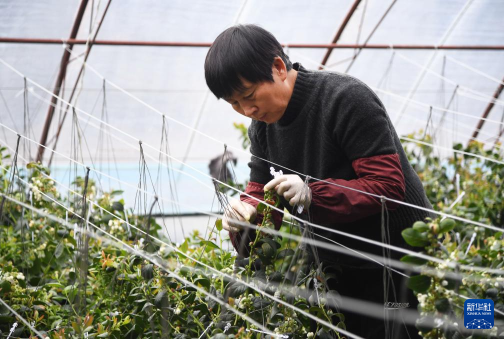 近日,北京市平谷区山东庄镇种植的大棚蓝莓陆续进入成熟期,工作人员加强管理,适时采收蓝莓,在供应市场的同时,通过视频直播、游客采摘等方式,多措并举助力蓝莓销售。
