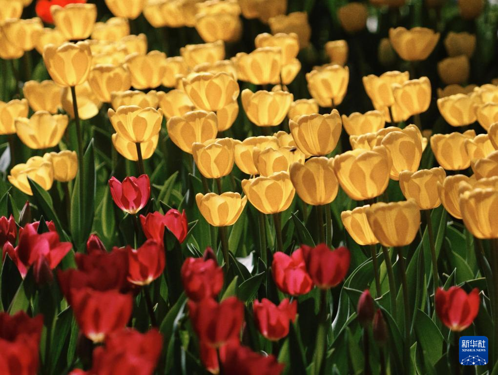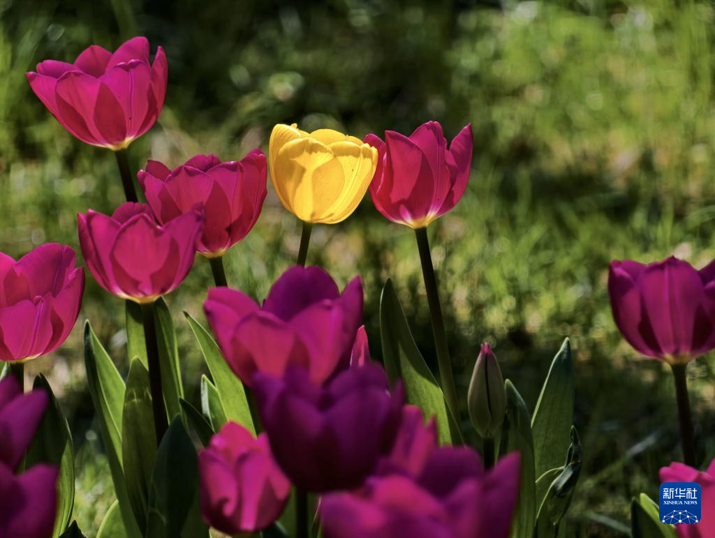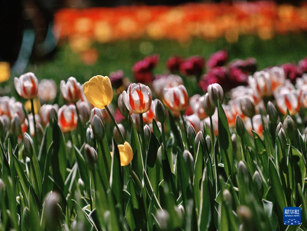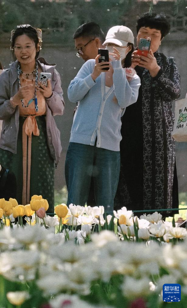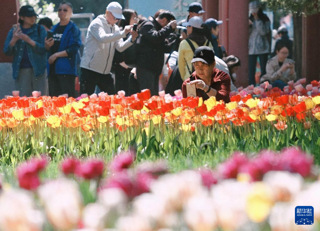 春日暖阳下,北京中山公园内郁金香次第绽放,缤纷艳丽、生机盎然,吸引游客漫步观赏,拍摄定格春日美好景致。