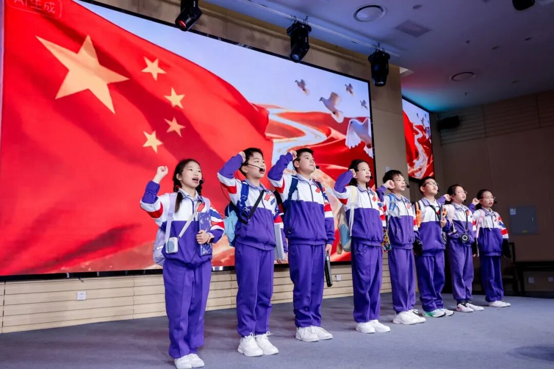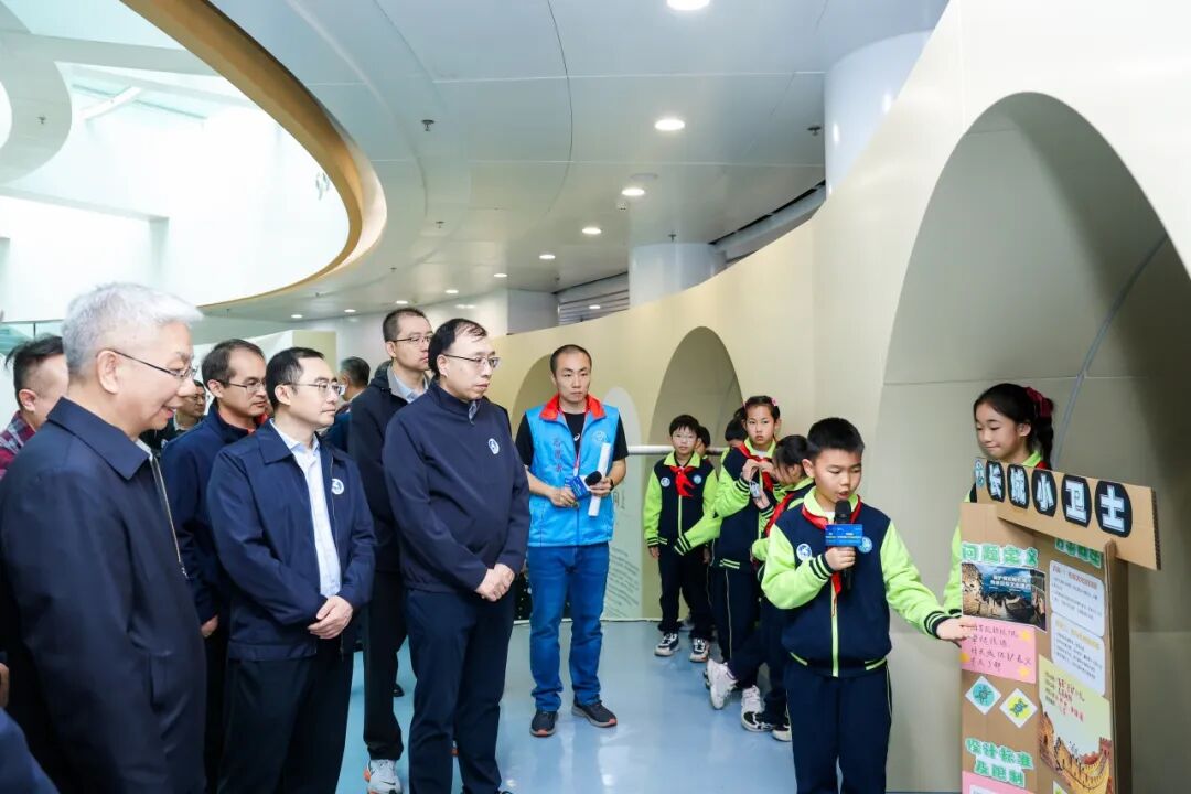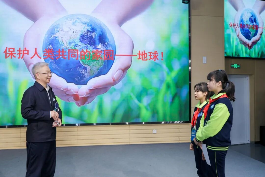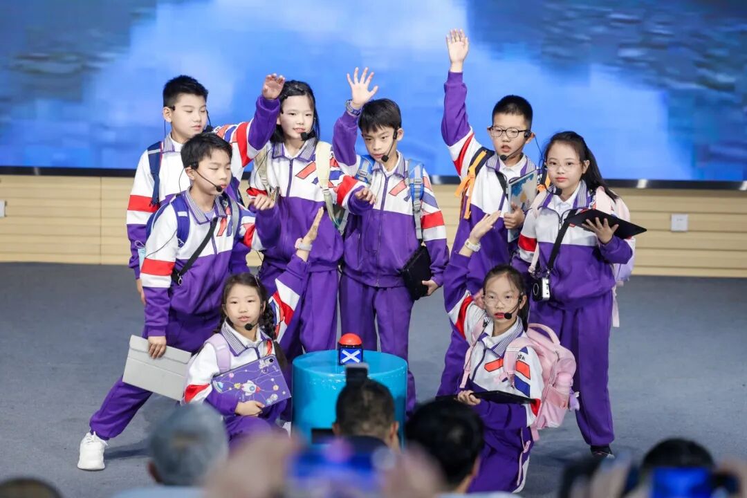 景山学校的同学们表演了原创科普小话剧《未来水世界的“新质”使命》。剧中,同学们从教室穿越到地下暗河,用自制的“水质侦探”设备探索地球的秘密、拯救母亲河,以生动的表演诠释了热爱探索的科学精神与守护绿水青山的坚定决心。