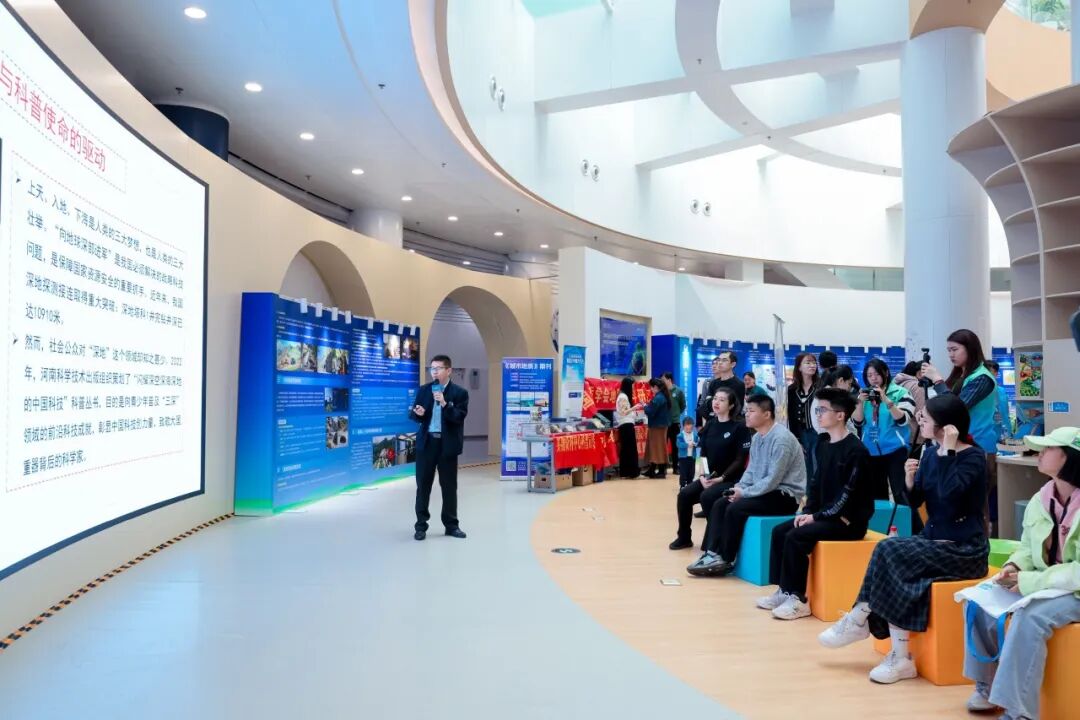 活动特设了充满童真童趣的趣味科普交互区,吸引了众多观众驻足。“自然资源科普小讲师”代表围绕地球科学、资源保护等话题,面向参观公众进行展讲。
