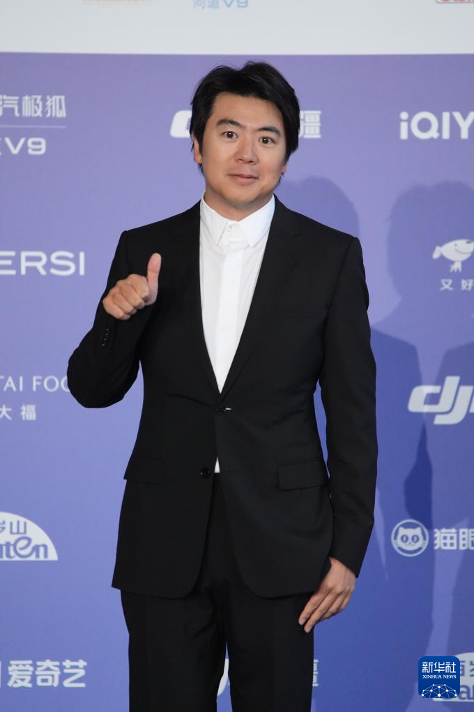 4月25日,钢琴家郎朗亮相北京国际电影节闭幕式蓝毯现场。