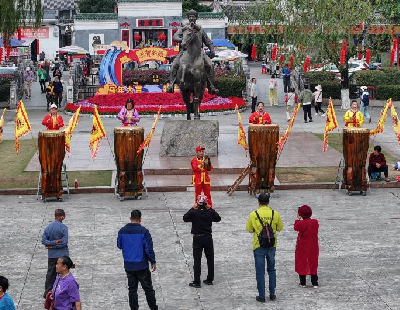广西钦州:看戏击鼓 体验传统文化