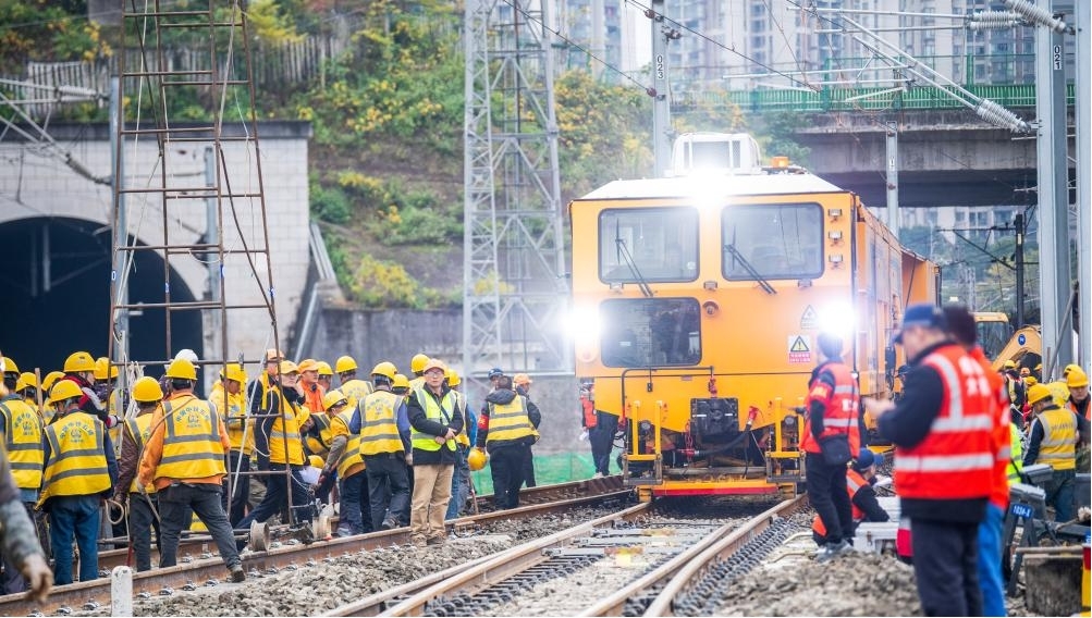 12月23日凌晨,成渝中线高铁引入重庆北站工程第二阶段站改I级施工顺利完成。此次施工作业任务由来自中铁五局、重庆工电段、成都工务大机段、成都电务维修段等多家单位的1200余名施工人员经过1050分钟完成。成渝中线高铁是我国“八纵八横”高铁网沿江通道的重要组成部分,正线全长292公里,设计时速350公里。