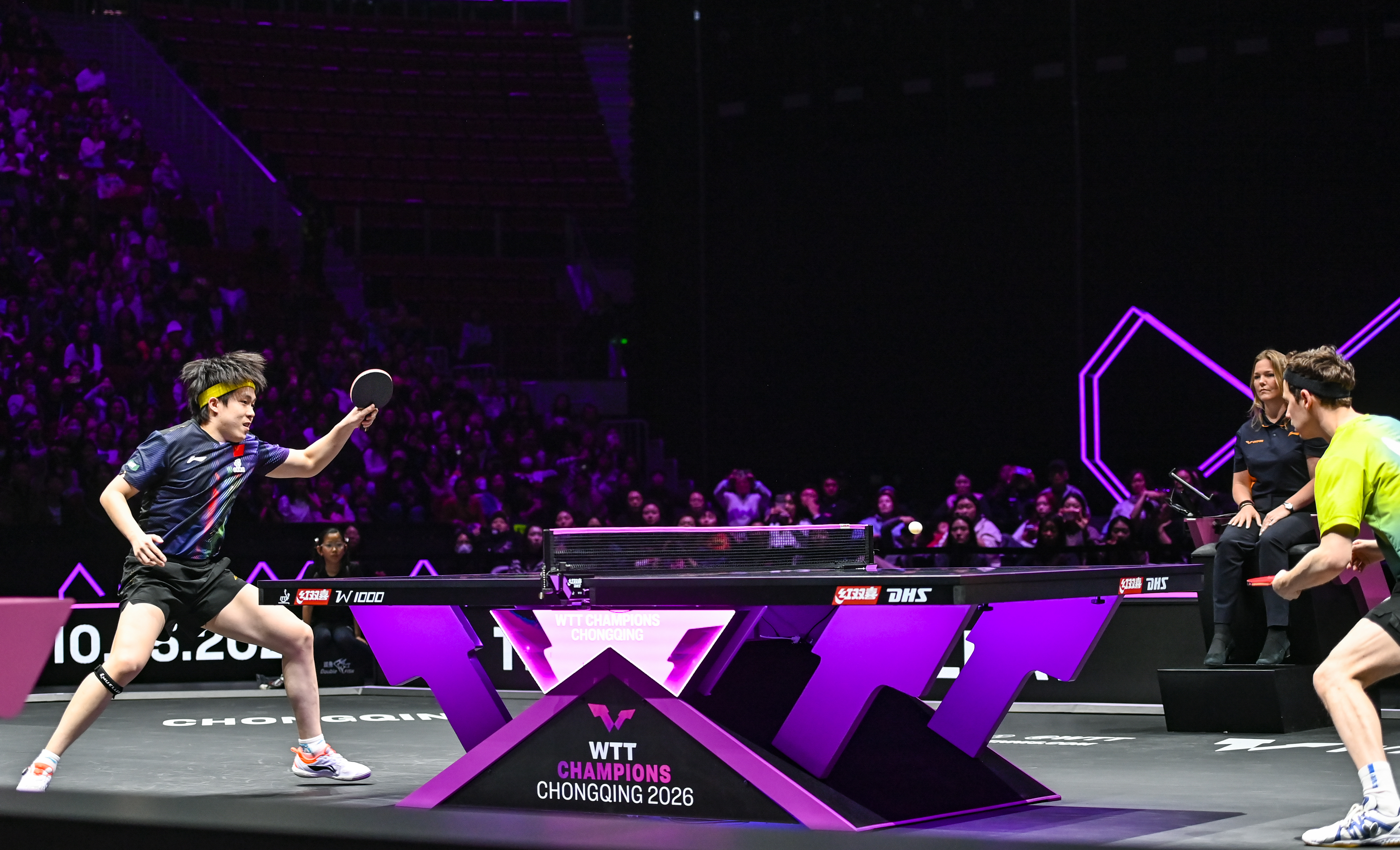 ▲3月11日,重庆巴南华熙生物·润百颜ECM中心,WTT重庆冠军赛2026现场,中国选手王楚钦出场。记者 齐岚森 摄